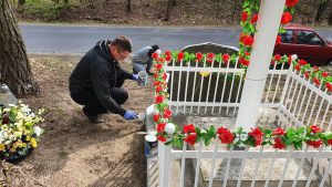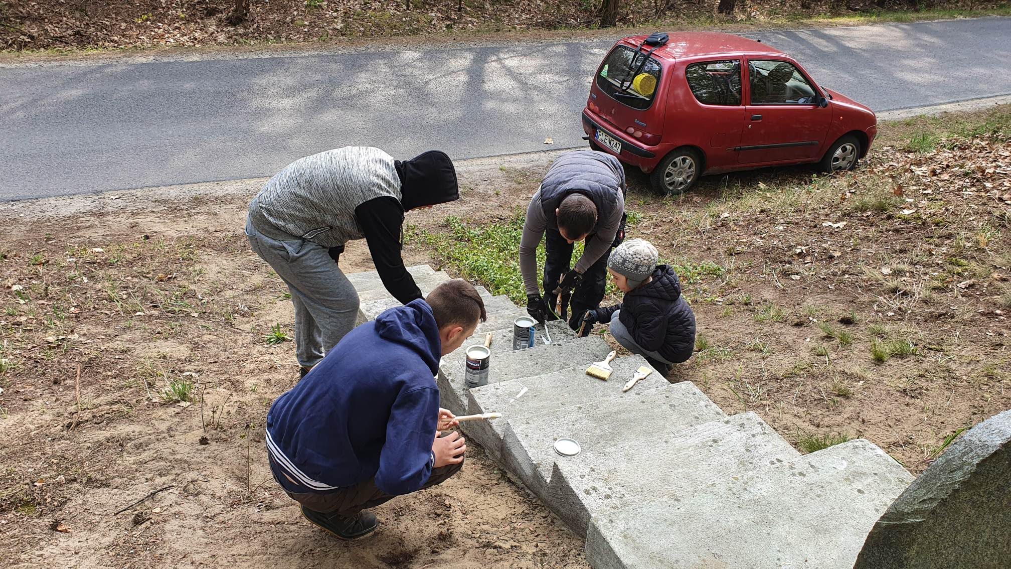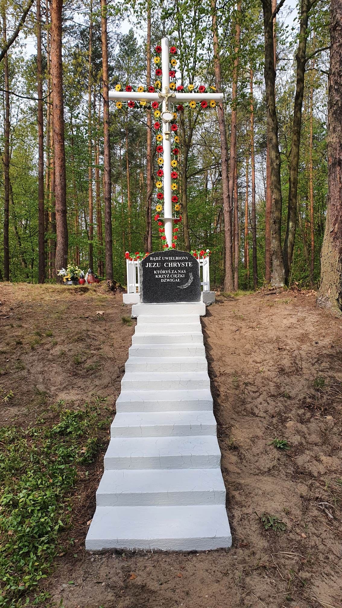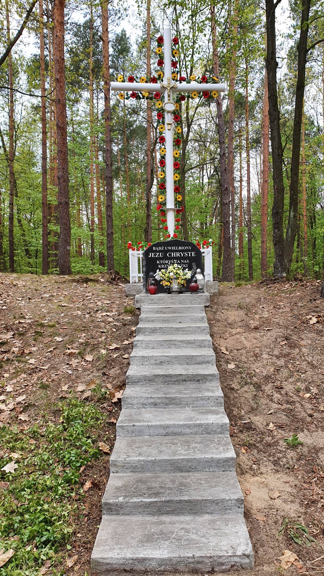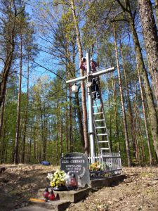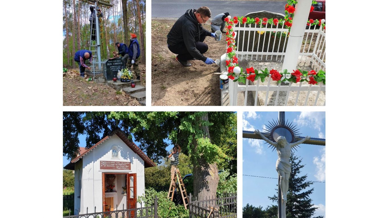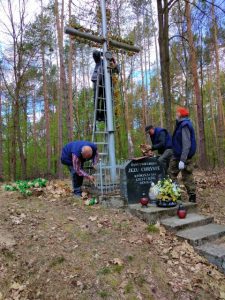 Jako pierwszy odnowiony został Krzyż przydrożny w lesie przy drodze powiatowej nr 1241 R – całość obiektu (Krzyż, ogrodzenie oraz schody) została gruntownie oczyszczona i pomalowana.