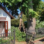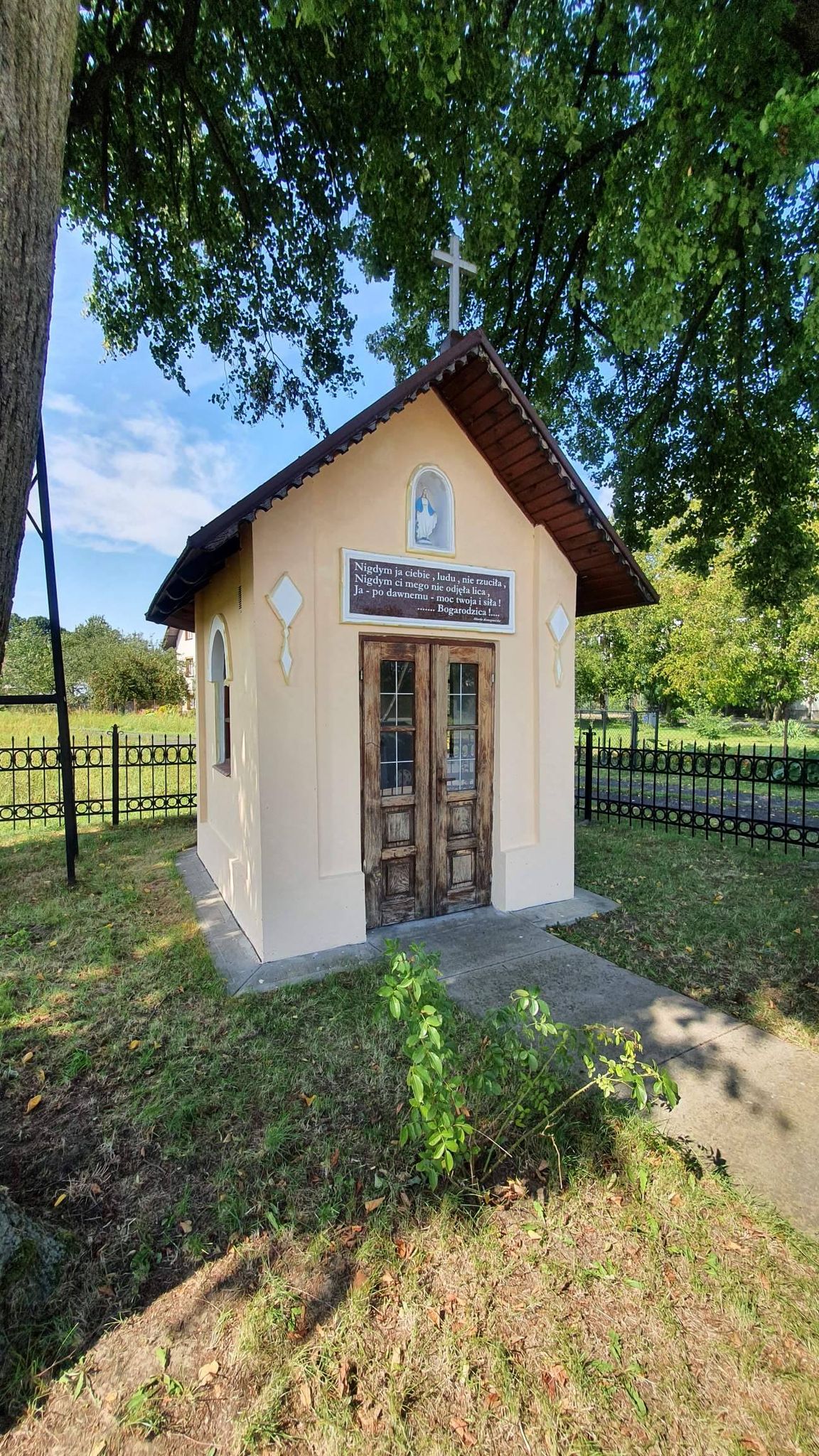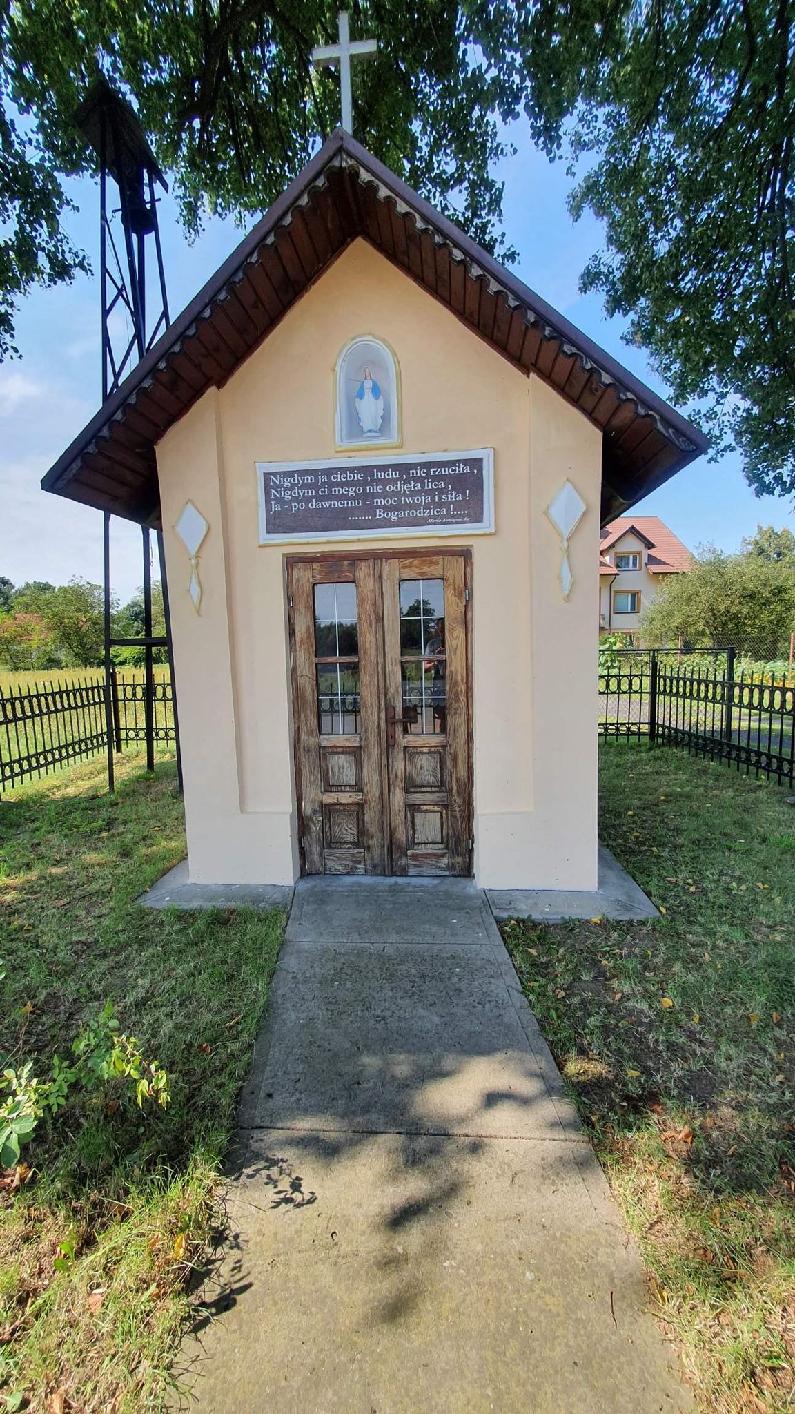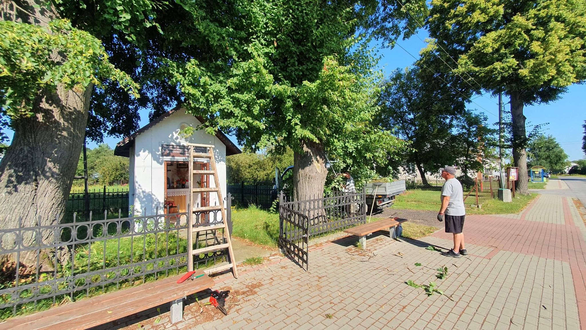 Największy zakres robót został zrealizowany podczas prac renowacyjnych przy kapliczce obok szkoły podstawowej. Aby móc przystąpić do działania należało najpierw kompleksowo przyciąć gałęzie drzew, które dość mocno zasłoniły sam obiekt oraz dzwonnicę.