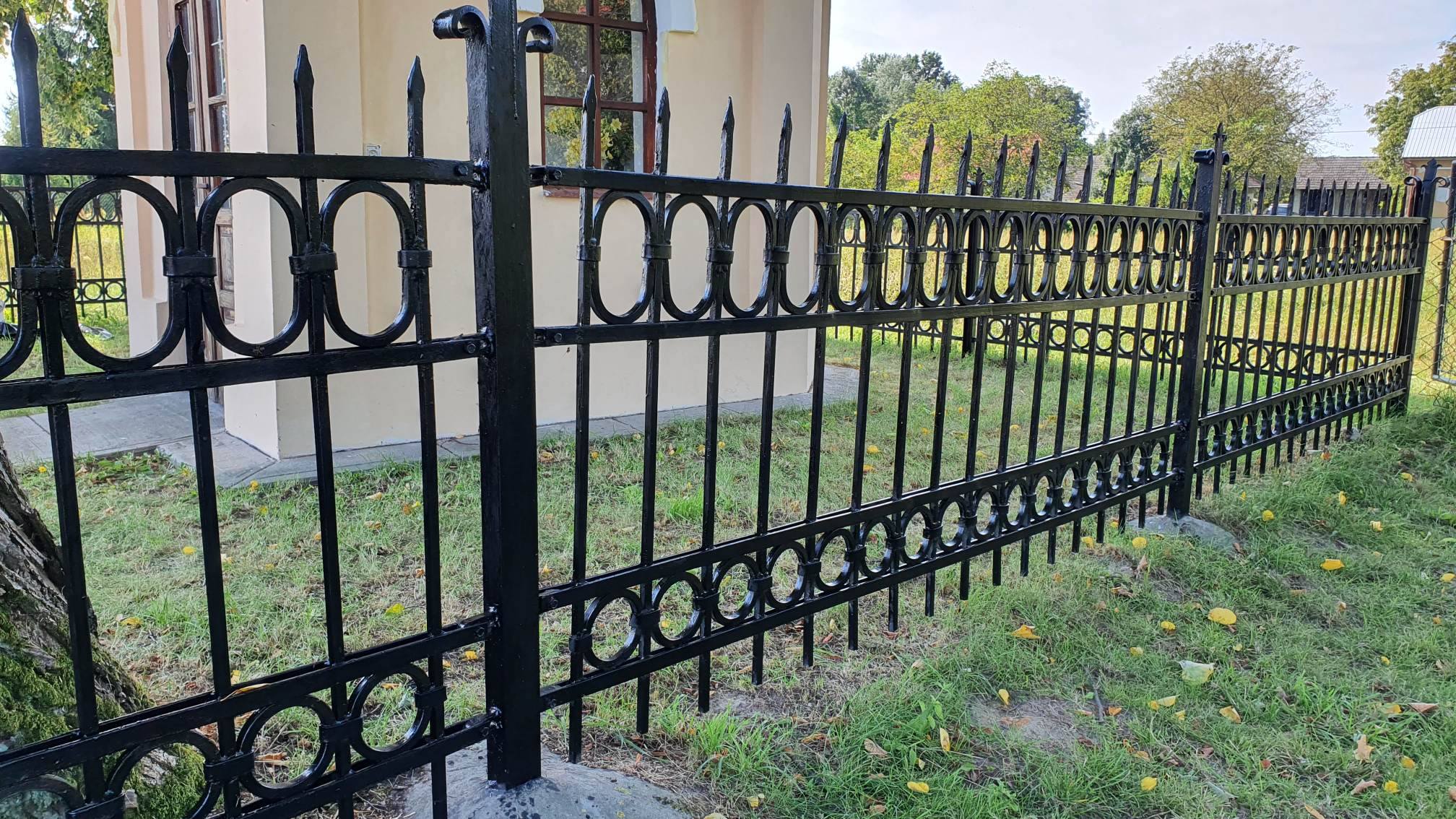Pracom renowacyjnym poddano także metalowy płot – wymienione zostały zawiasy przy furtce, całość ogrodzenia została ponadto oczyszczona i pomalowana.